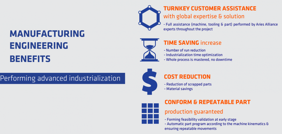Based on Aries Alliance know-how and experience, this service gives customers full assistance from the part model to the final manufacturing step, ensuring high quality, profitable production.