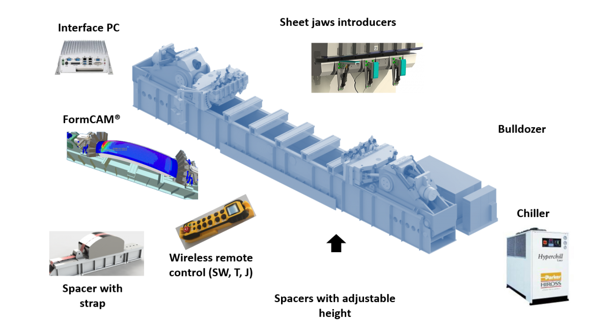 - Up to 38 independently controlled axes allow for the forming of complex shapes